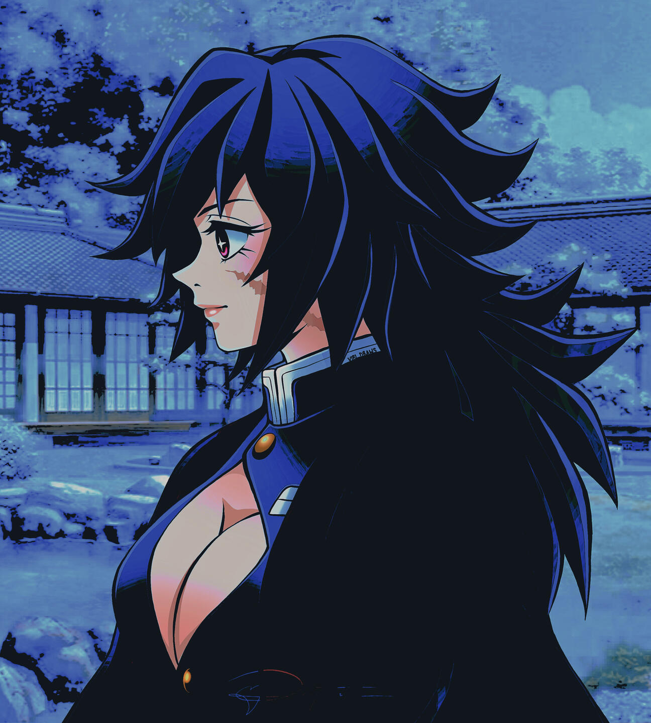 Midori’s Memory: Midori waits, but Giyu never returns. Throughout the night she stays hidden and quiet. An hour before dawn, Midori risks leaving the tree hollow, trying to follow her brother’s footprints in the snow. With heavy snowfall however, she looses his tracks.Hearing someone approaching, she looks to see what appears to be the silhouette of an adult carrying a child. Overjoyed, thinking it’s Tsutako and Giyu, Midori calls out, only to realise the figure approaching is the demon, holding a half eaten body in its claws. Midori runs with the Demon giving chase, narrowly escaping the same fate. Moments before daybreak, a faint beam of light catches the demons skin, causing it to howl in pain. The demon abruptly abandoned the pursuit, vanishing back into the woods.It found shelter in the hollow tree Midori was originally hidden in, and finishes devouring the human carcass.Eventually, later that night, Midori manages to find her way back to the tree hollow. Upon entering, she stumbles upon a massive amount of blood and the gory remains of the demons last meal staining the ground. In the centre, half frozen in that blood, is her sister’s hair pin.It is then she realises that she is truly alone. Both of her siblings are gone. A cold anger settles in, and Midori vows to end the demon, or join her sister and brother trying.Remembering the demon fled from daylight, she knew that was her only chance to defeat the it. She would lure the demon out into the open right before day break, and pray the sun would catch it before it caught her.The following morning, Midori ventures out, looking to find a break in the trees, an opening to a clearing somewhere nearby. When she finds what she’s looking for, she pulls out Tsutako’s hairpin, using it to cut the palm of her hand. The girl then marks a path for herself to follow, so that when the time came, she would be able to find the clearing quickly, knowing the scent of her blood would attract the demon.As planned, the demon gave chase and Midori ran, leading it to the clearing. Before she could break through the line of trees, the demon struck her across the back, sending her tumbling into the edge of the clearing.It’s next attack, a bite over her shoulder, narrowly missing her neck. The demon shook her violently, throwing her through the air to the centre of the clearing, and in a frenzied bloodlust, the demon ignored the dawn creeping over the horizon.The Demon lunged at Midori, and in a last desperate attempt, she stabs the demons eyes with Tsutako’s hairpin. Demon blood gushed from the wounds, hitting Midori’s face, getting into her eyes. Daybreak broke the horizon line, sending light streaming across the clearing. The demon burned to ash, as did the demon’s blood in Midori’s eyes, causing searing pain.When the last remnants of demon’s blood turned to ash beneath the rising sun, it left Midori’s deep blue eyes, a burning crimson. It would take some time before she would be able to tolerate sunlight again.Tucking Tsutako’s hairpin away, Midori slowly returns to the hollow tree, unaware that she and her brother had narrowly missed crossing paths. Here, she says her final farewell to the life she knew.